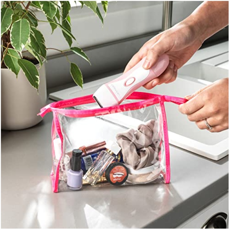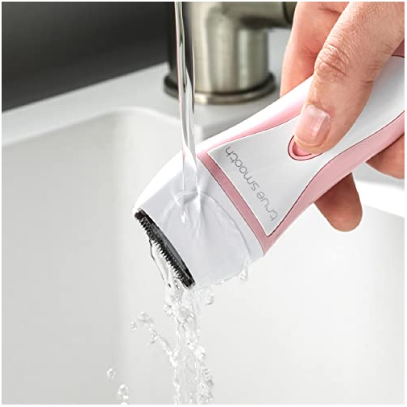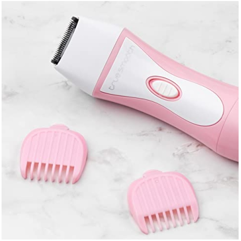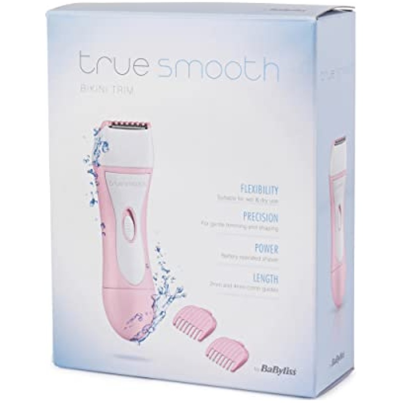 True Smooth by Babyliss 8772BU Bikini Trimmer, 2 Comb Guides, Portable, Wet/Dry Use, Precision Trimming for Gentle Cutting, Battery Operated, Cordless, Shaving Legs, Underarms, Bikini Line, Pink/White