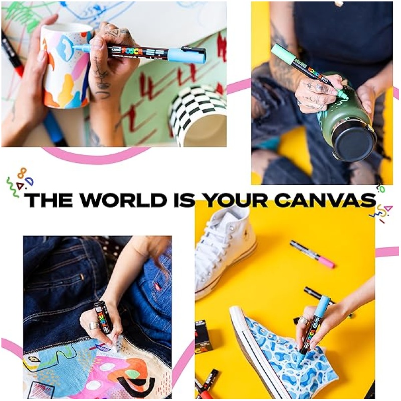- Writes on most surfaces: Paper, card, metal, plastic, glass, stone, canvas, fabric etc