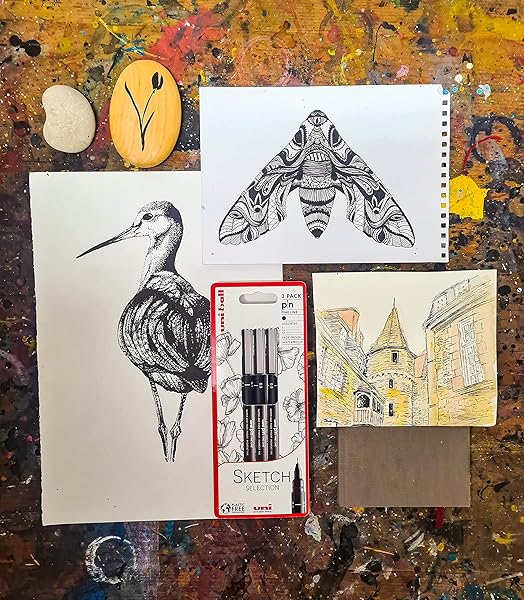 Love to sketch and draw? A uni-PIN pen is the perfect tool for you. The uni-ball PIN is the pros choice. An excellent artist pen, it contains fade proof and water resistant Super Ink – great as you want your creations to last. Its solid pigment ink line is clear, clean and precise, which is why the PIN is loved by professional artists and illustrators, graphic artists and architects. The ink is water resistant too so the pens can be used with watercolour and will not smudge when wet. Its choice of black PIN nib sizes from delicate 0.03 to a heavy 1.2, plus expressive brush and chisel tips, means you can create several line widths with your PIN. This enables you to master a range of techniques including fine line drawing and hand lettering.