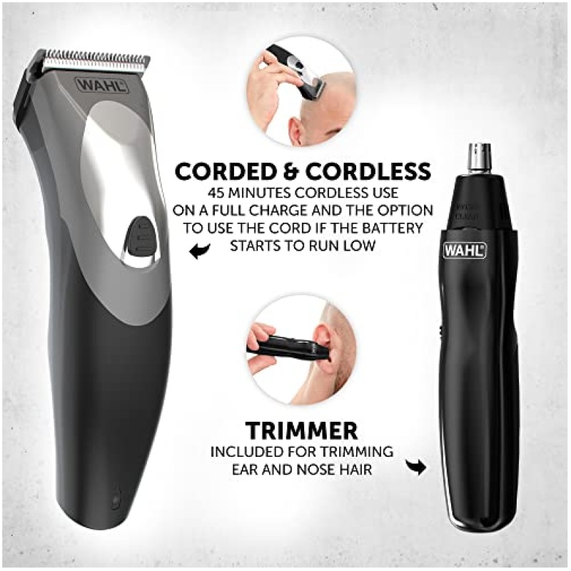 Wahl Clip N Rinse Hair Clipper for Men, Gifts for Him, Head Shaver, Men's Hair Clippers, Nose Trimmers for Men, Cordless Clippers, Washable Head, DIY Haircuts, Easy Home Haircutting