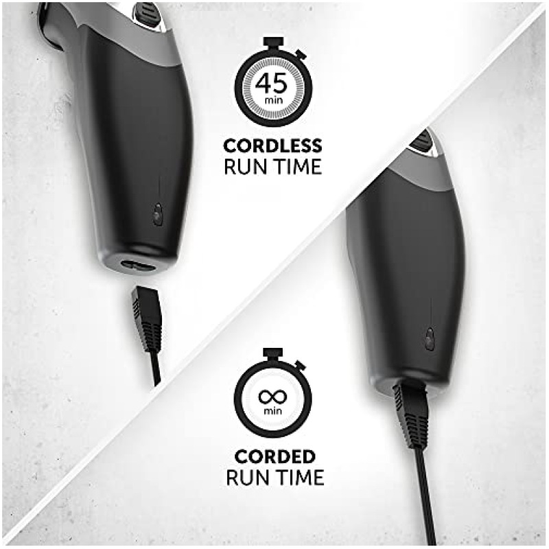 - CORD / CORDLESS – Cordless capability enables maximum manoeuvrability when cutting hair. Up to 45 minutes cordless use on a full charge with the option to use on the cord if the battery starts to run low