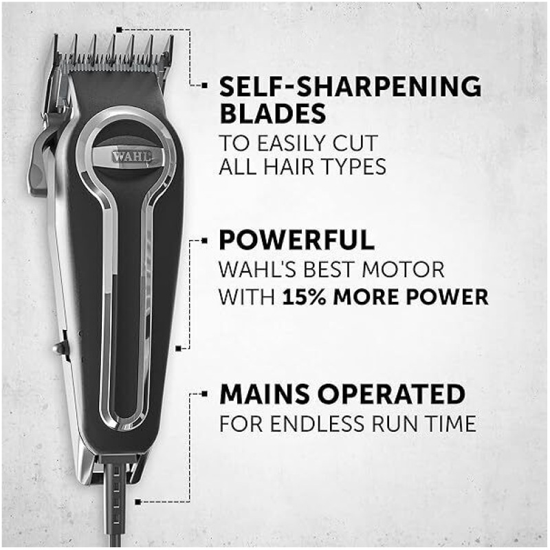 Wahl Elite Pro Hair Clipper, Corded Hair Clipper, Premium Cutting Combs, Black