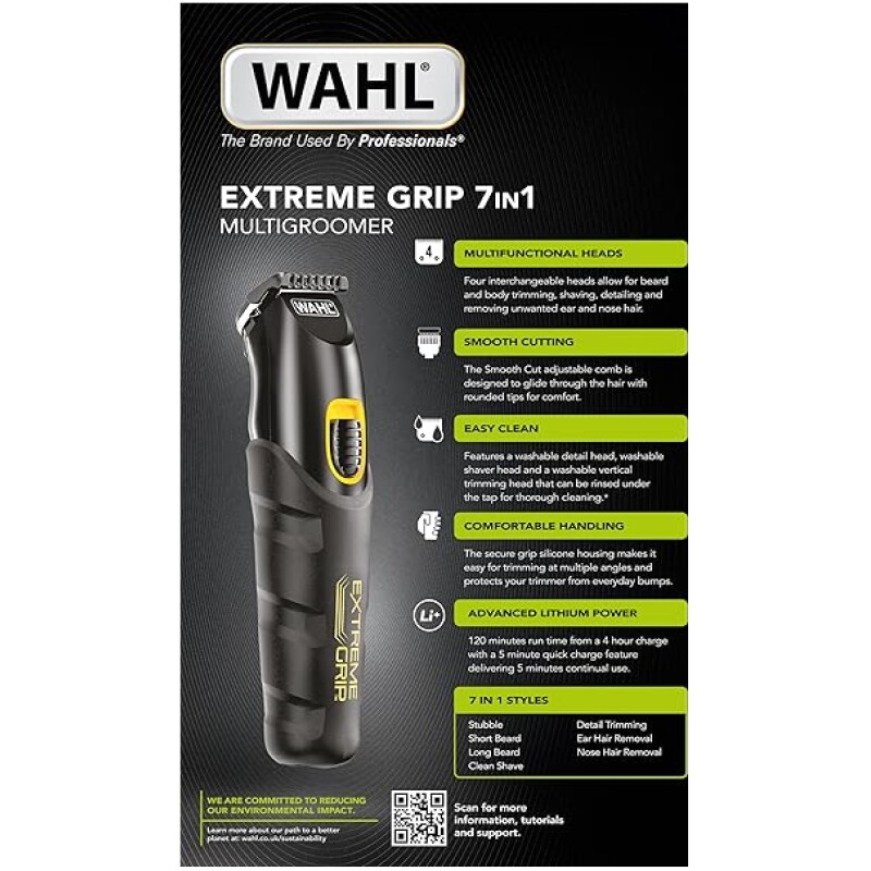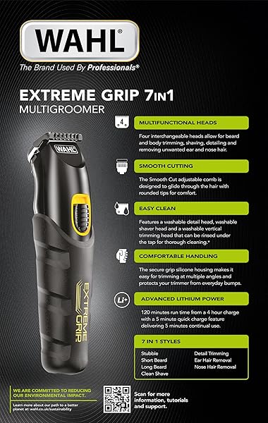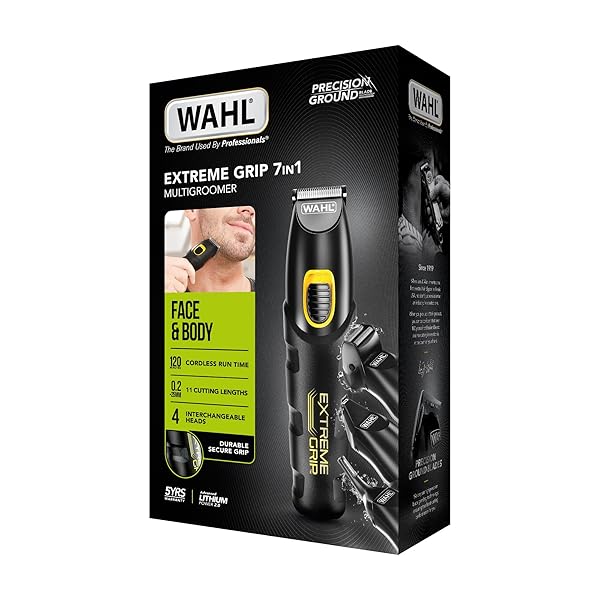 Wahl Extreme Grip 7 in 1 Multigroomer, Beard Trimmer for Men, Nose Hair Trimmer, Men’s Stubble Trimmers, Body Shaver and Trimmer, Beard and Body Trimmers, Male Grooming Set