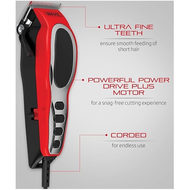 - POWERFUL MOTOR ? Equipped with a durable, long-lasting Power Drive Plus heavy-duty motor that delivers exceptional power for a snag-free cutting experience. Runs 15 percent cooler than a standard Wahl Power motor, making it more comfortable to use over longer periods of use