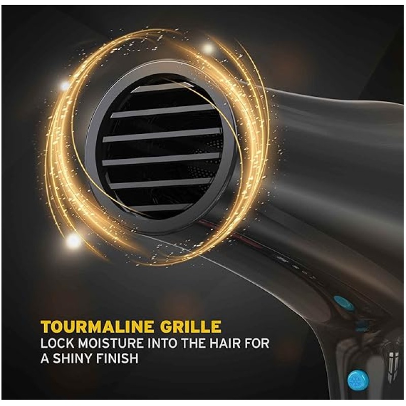 - ENHANCED SHINE – Designed with a tourmaline grille that locks in moisture for smooth hair with a natural shine. The Ionic function ensures anti-frizz and delivers long lasting shine and healthier looking hair
