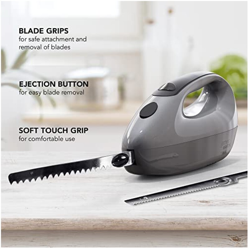 • Powerful 150W electric knife makes light work of carving and cutting.