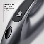 • Features a safety mechanism for safe removal of the blades.