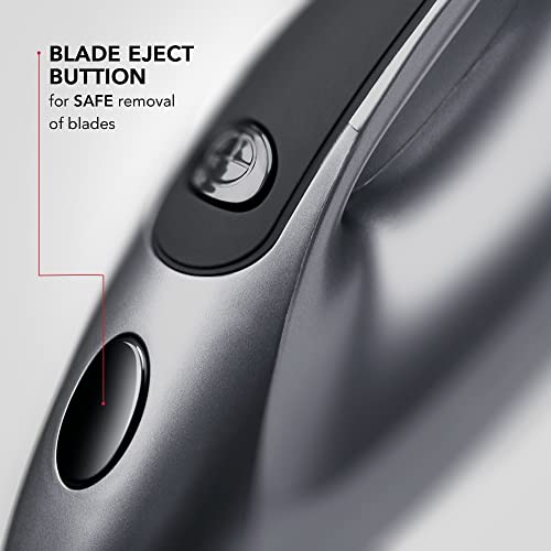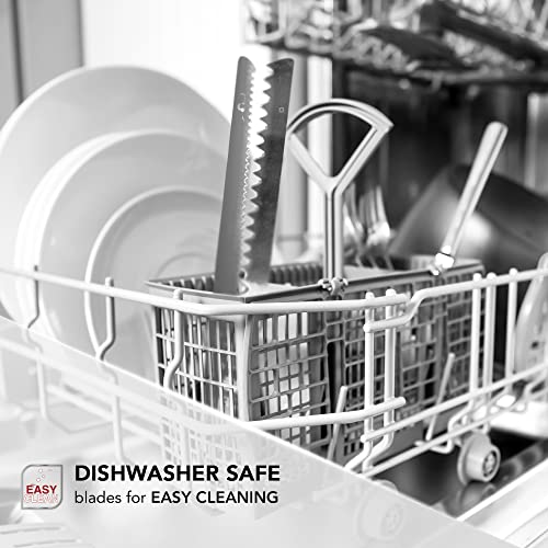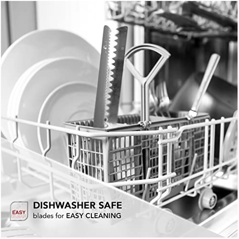 • The easy to use design includes a rubberised handle making it comfortable to hold and operate, and the dishwasher safe blades for easy cleaning.