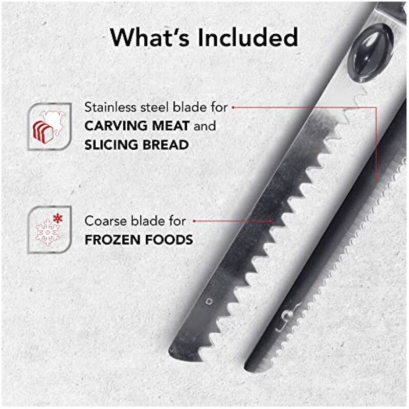 • Standard blade for roasts, poultry and general cutting and carving, coarse blades for frozen foods and hard to tackle meats.
