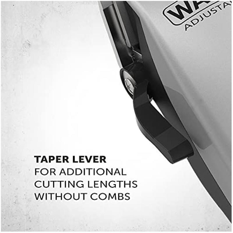 - TAPER LEVER Adjustable taper lever provides a wider variety of cutting lengths without changing attachment combs and makes it easy to select and lock in the length you need. Also great for creating styles such as fades