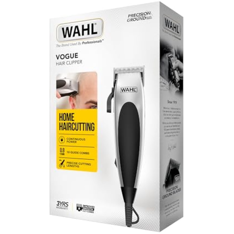 WAHL Vogue Corded Hair Clipper for Men, Home Hair Cutting, Male Grooming Kit, Mains Powered Clipping, Precision Cutting Blades, Black