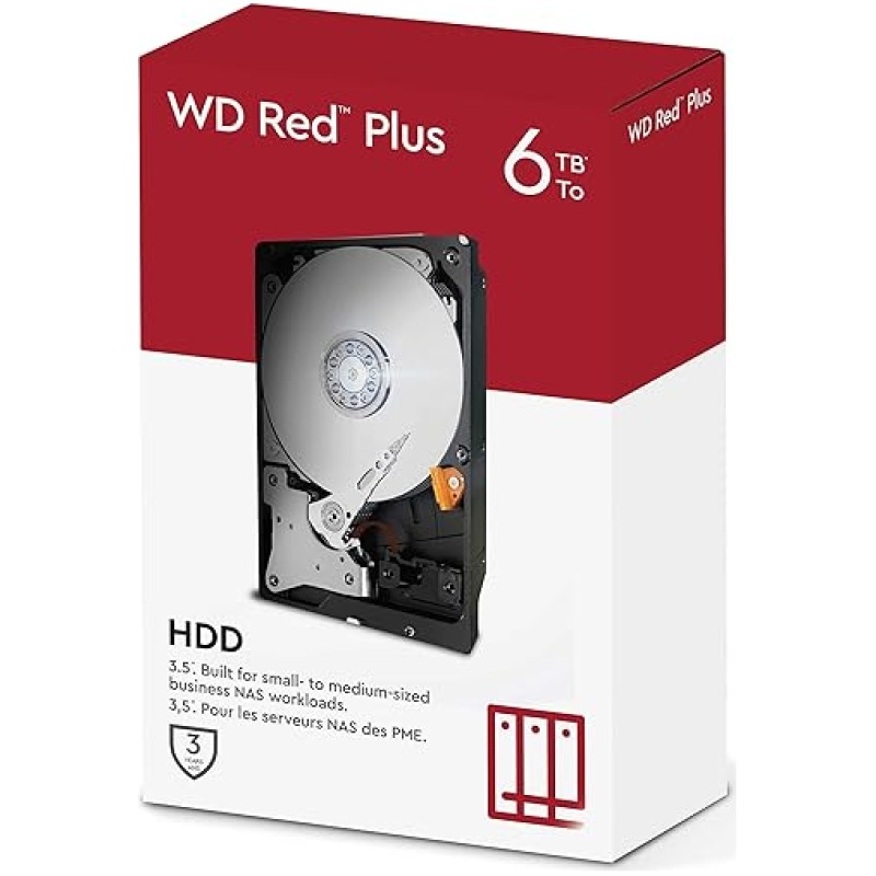 WD Red Plus 6TB NAS 3.5" Internal Hard Drive – 5400 RPM Class, SATA 6Gb/s, CMR, 256MB Cache